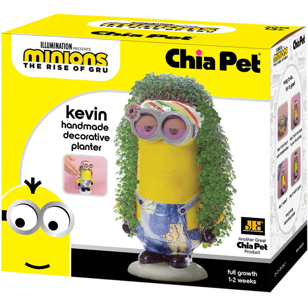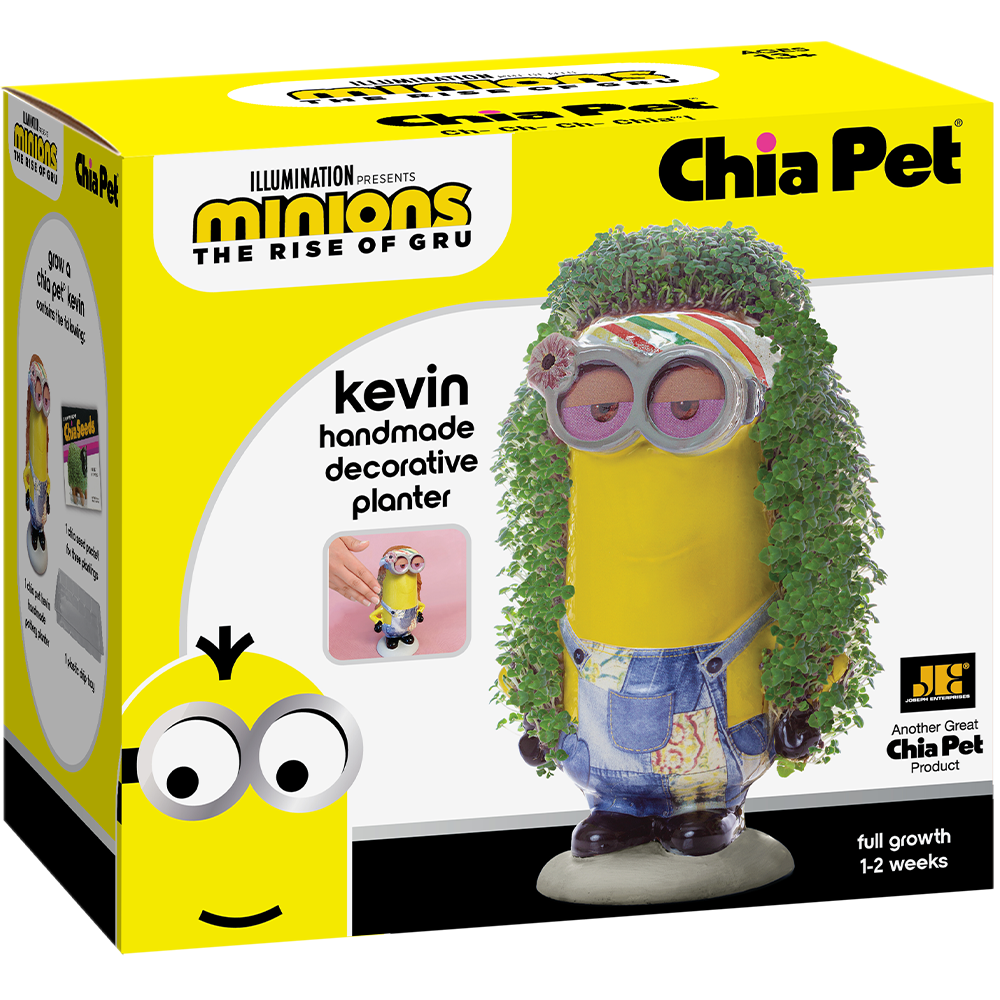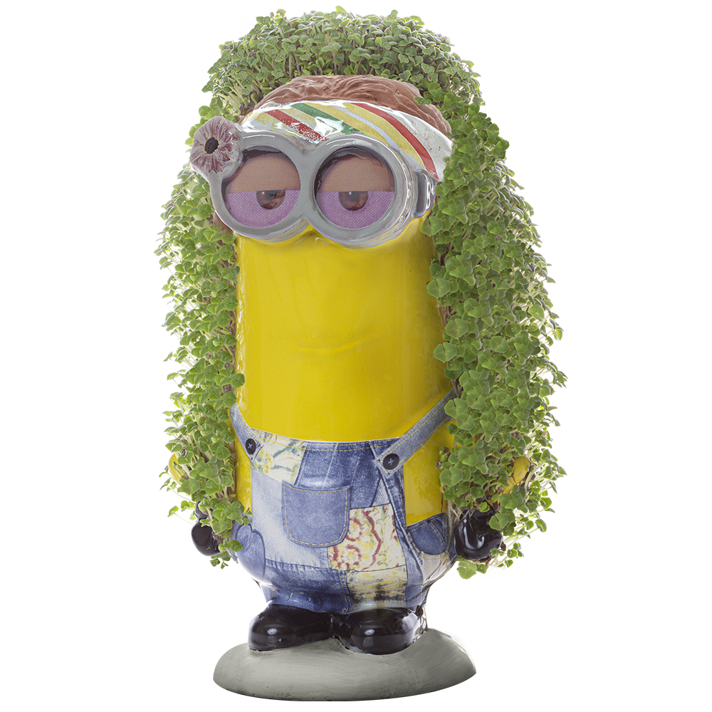 Everyone loves Despicable Me and the Minions, and now you can add a groovy-looking Minion Kevin Chia Pet to your décor! This unique Chia Pet features fan-favorite Minion, Kevin, dressed in a hippie disguise with a striped headband, patchwork overalls, and a flower on his goggles. Add the Chia seeds to his long, flowing hair and see it become luscious and leafy green in only 1 to 2 weeks. Even though Kevin is from a kids’ movie, we know this fun and interactive Chia Pet will be loved by kids and adults alike. This Minions Kevin Chia Pet will make a great gift for any fan of the Minions, the counterculture movement, or basic gardening!